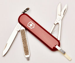 Small penknife with little scissors: As light weight as I could find. It had a small blade (useful for cutting fruit / cheese etc). A small pair of scissors and a nail file |